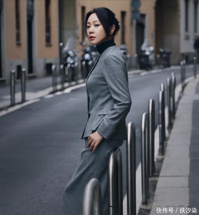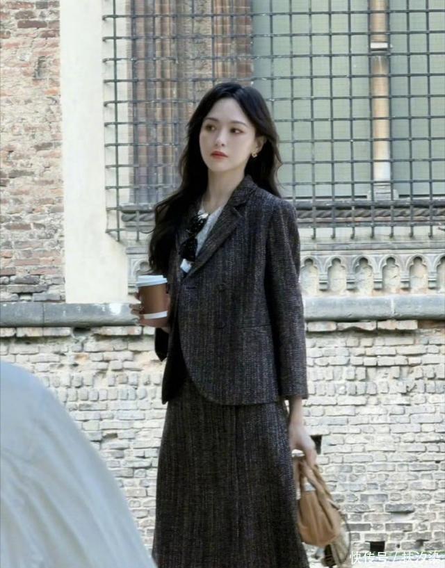 除了这套西服长裤的造型之外,唐嫣还有一套灰色的西服裙穿搭,看起来也很年轻时尚,整体看上去都要比实际年龄年轻一些,就跟三十来岁的女生差不多。